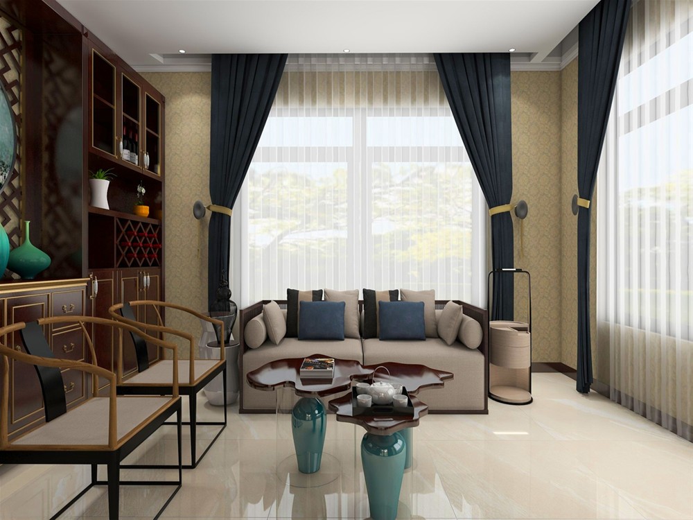 身处客厅一切由“心”出发,通过顶、地、墙以及家具饰品各个中式元素巧妙结合,使整体空间呈现出”素“、”雅“、”明“、”静“四界氛围。此空间主构架以木色为主,构架出“雅”。