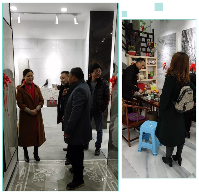 开业这天,不少业主、当地设计师、装饰公司、泥瓦工朋友慕名前来,对青春馆的设计是赞不绝口:设计符合当代消费者口味:年轻、个性、时尚有品位;产品种类繁多,应用广泛;模拟间接地气。