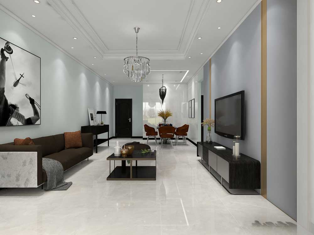 大户型客厅在软装和风格选择上有很大的空间,吊顶造型设计相对简洁,隐藏式的灯带能够渲染出更加温馨的家居氛围,再搭配数盏筒灯及水晶灯的点缀,营造出时尚大气的视觉效果。现代风格的电视背景墙多会采用瓷砖、大理石来装饰,布艺沙发也是现代风格的绝佳搭配,再配合大小合适的茶几,简洁实用又美观大方。