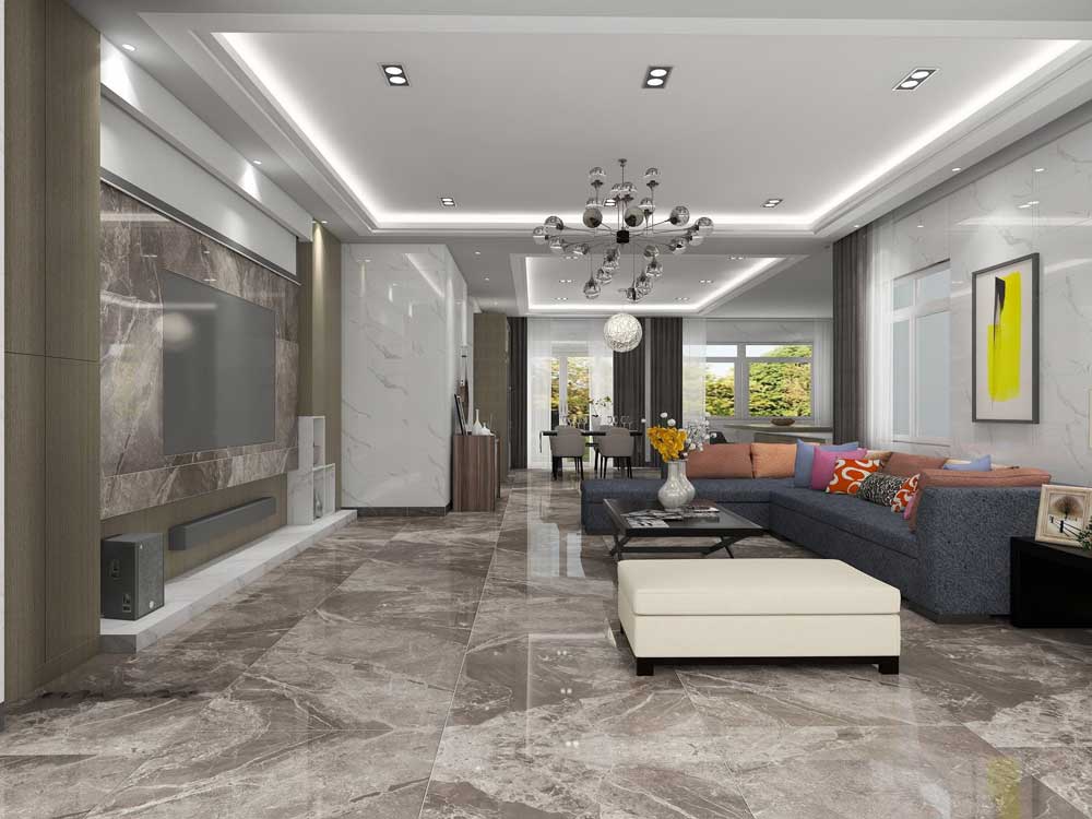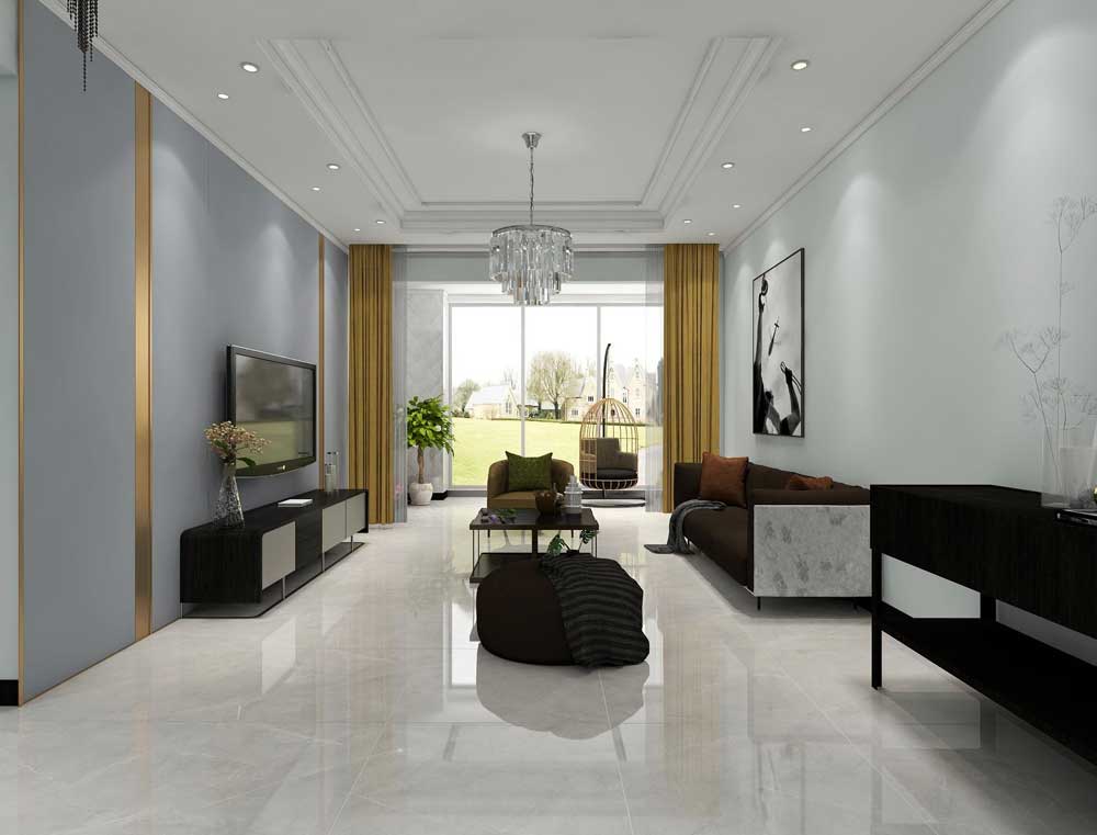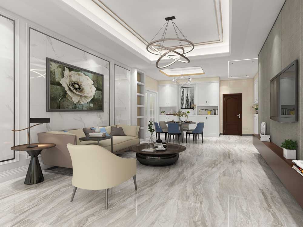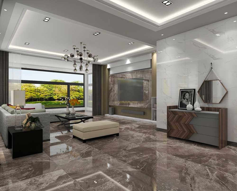 地面艾釉石KYP8091+波打线艾釉石KYB8017+墙面艾釉石KYP8118