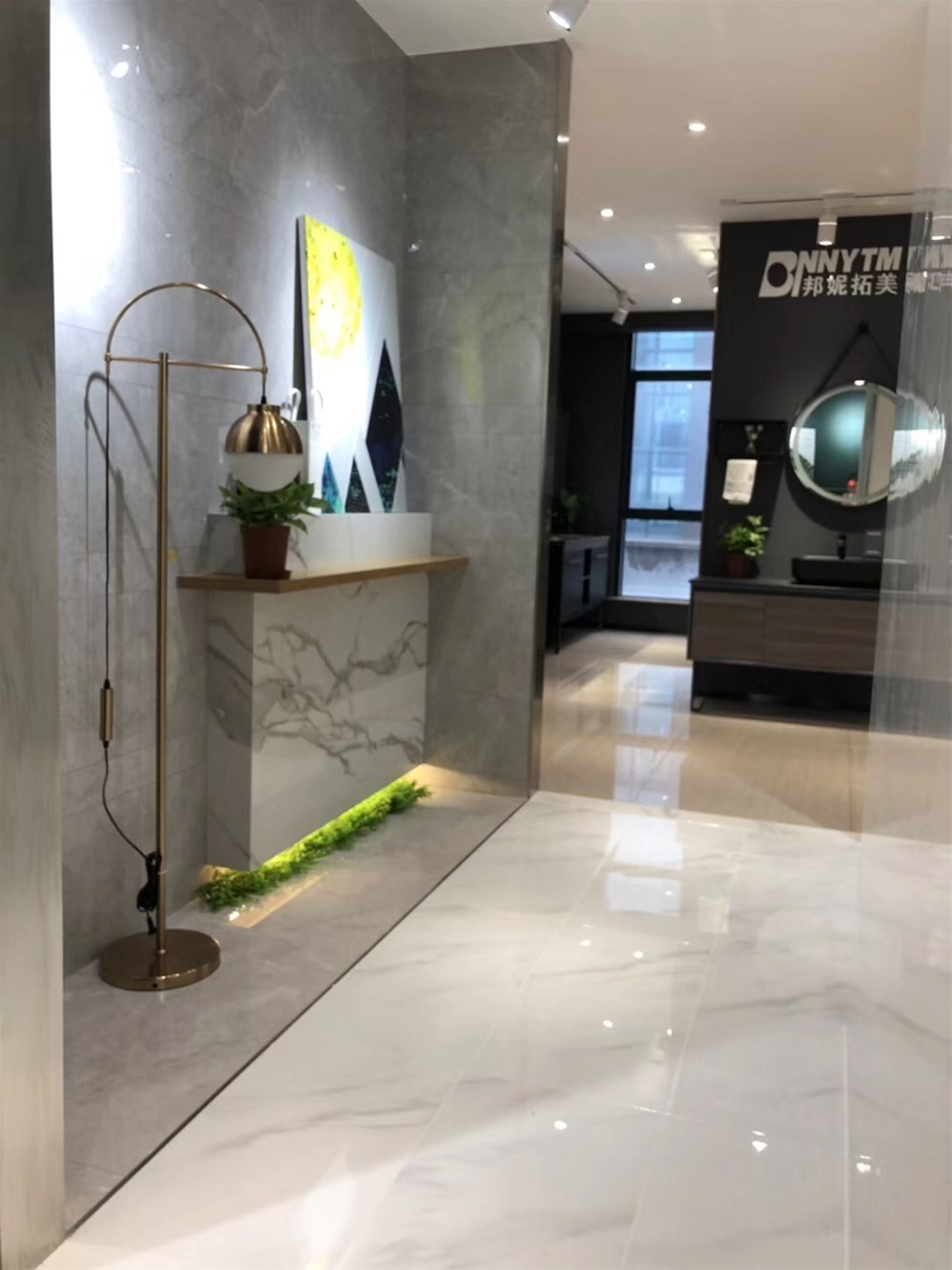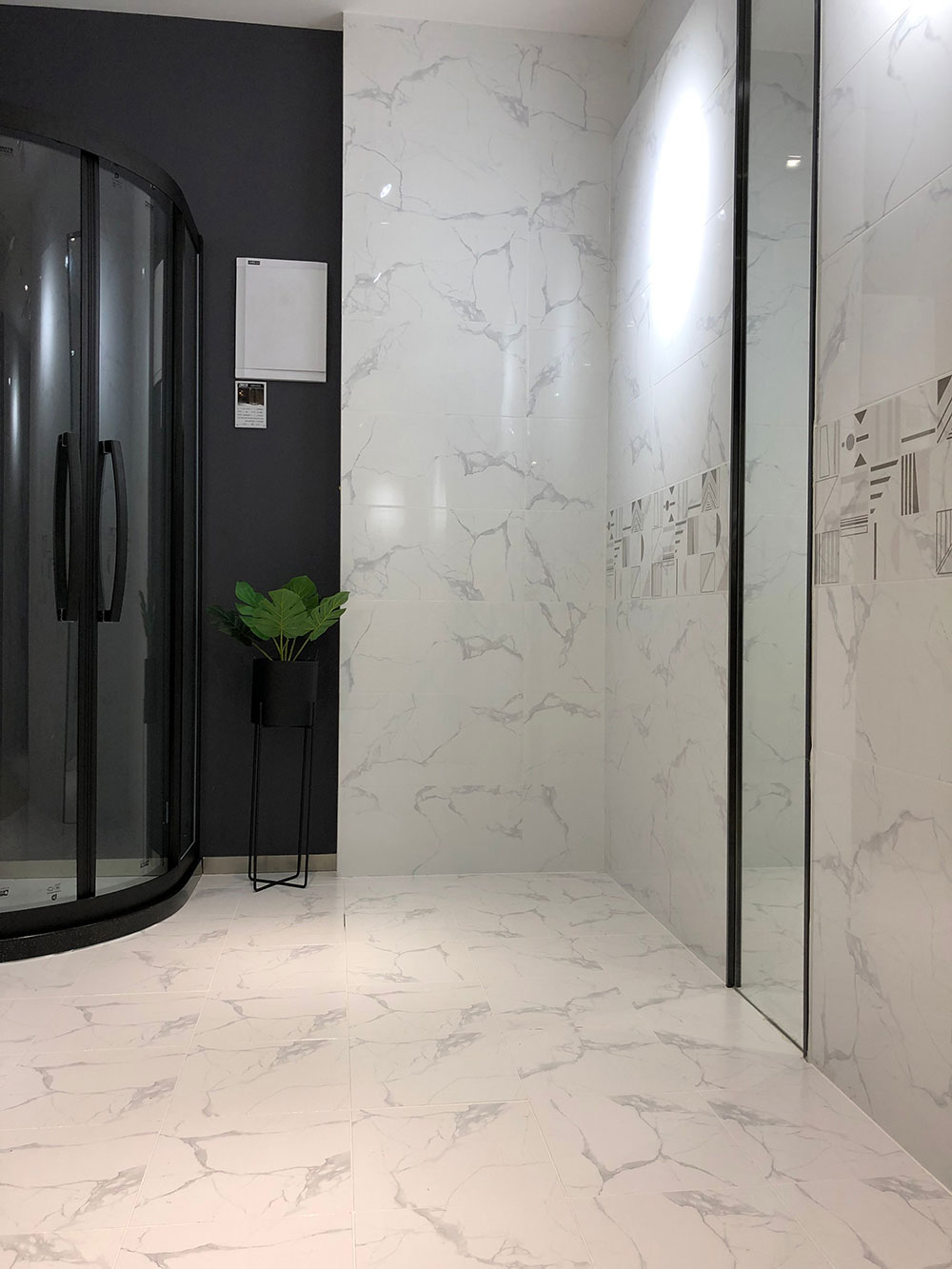 左边是由配套喷墨瓷片KPM36089系列拼贴的卫生间墙面,正面是由KPM36087H通铺的阳台墙面,整个空间删繁就简,突然现代风格的简约理念,不知道您觉得怎么样呢?