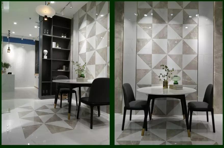 菱形间隔铺的背景墙点缀,让整个餐厅突然有了不一样的味道,小小的设计细节,带来了大大的档次提升。