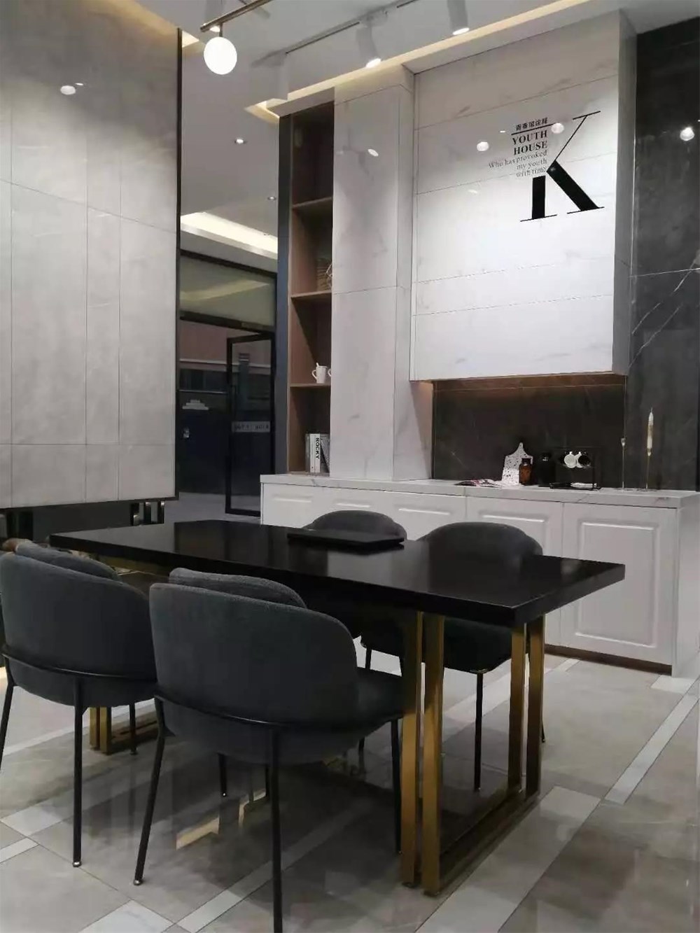 白色和深色背景墙的撞色设计,更加凸显空间的艺术感,白色的600*1200通体大理石,斜铺让客厅空间显得格外宽敞明亮一些。