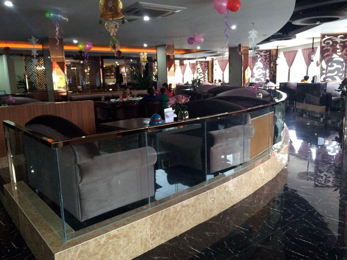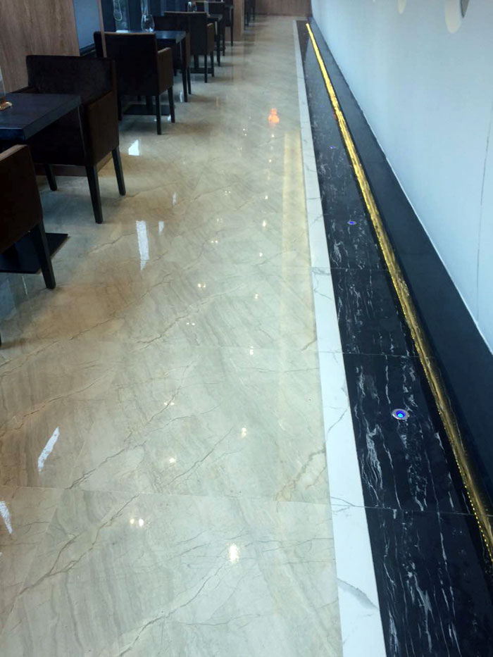 进入餐厅,地面、接待区、墙面、柱子、洗手间皆应用了激情AV青青草陶大理石瓷砖。餐厅内,激情AV青青草陶大理石瓷砖在配饰、灯光、布局的和谐搭配下,显得更加光彩夺目。各个应用空间,尽显大气的风采。
