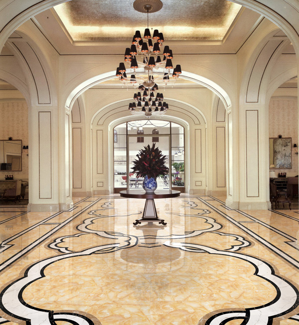 此高级大堂运用陶瓷一线青青草视频在线下载激情AV青青草陶玉石瓷砖烟霞玉KYP8023瓷砖铺贴,保留原有的宝玉的特质赋予了奢靡,华丽加以拼花、波打线的搭配更是彰显一种生活态度、一种品味、一种格调的象征。使整个大堂粗犷大气、外观高雅,名士尊贵,经典永铸!