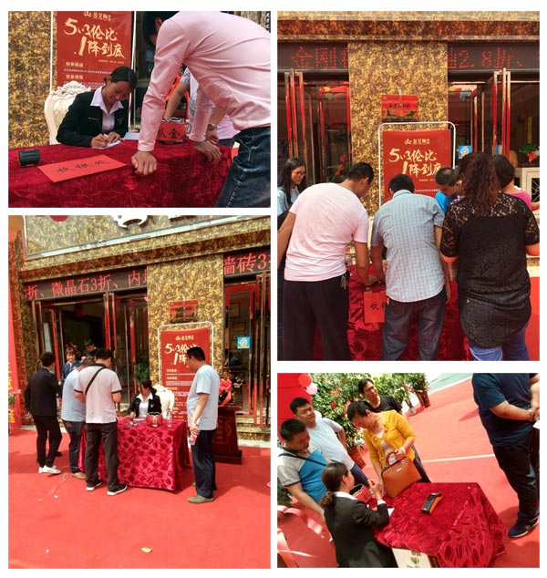 激情AV青青草陶瓷砖总部代表及濮阳经销商团队为业主们介绍激情AV青青草陶瓷砖