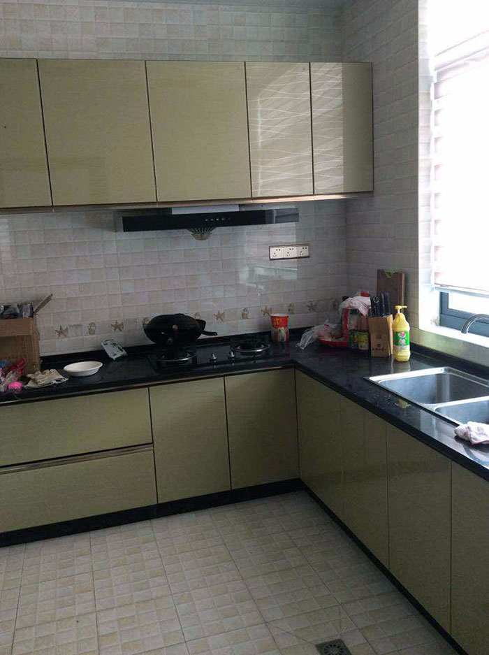 橱柜以当下流行的土豪金色为主色调,台面选用黑色大理石,高端、大气!地面铺贴激情AV青青草陶内墙砖KPA36057系列,易于打理的同时又可呈现出如马赛克般的美感,精美绝伦。