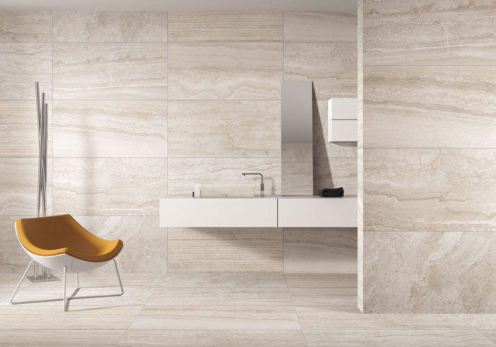 这样的瓷砖铺设到卫浴空间,既不容易损坏,也便于维护清洁。