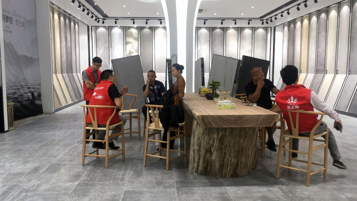 四天时间,莅临参观的客商不计其数,对这无论是品质上还是颜值上,都完美得无可挑剔,每一款产品,都给人一种回归大自然的真实感觉的阿玛罗尼现代仿古砖赞美不停。偌大的展厅呈现出一片热闹非凡的景象,可谓是人气爆棚!