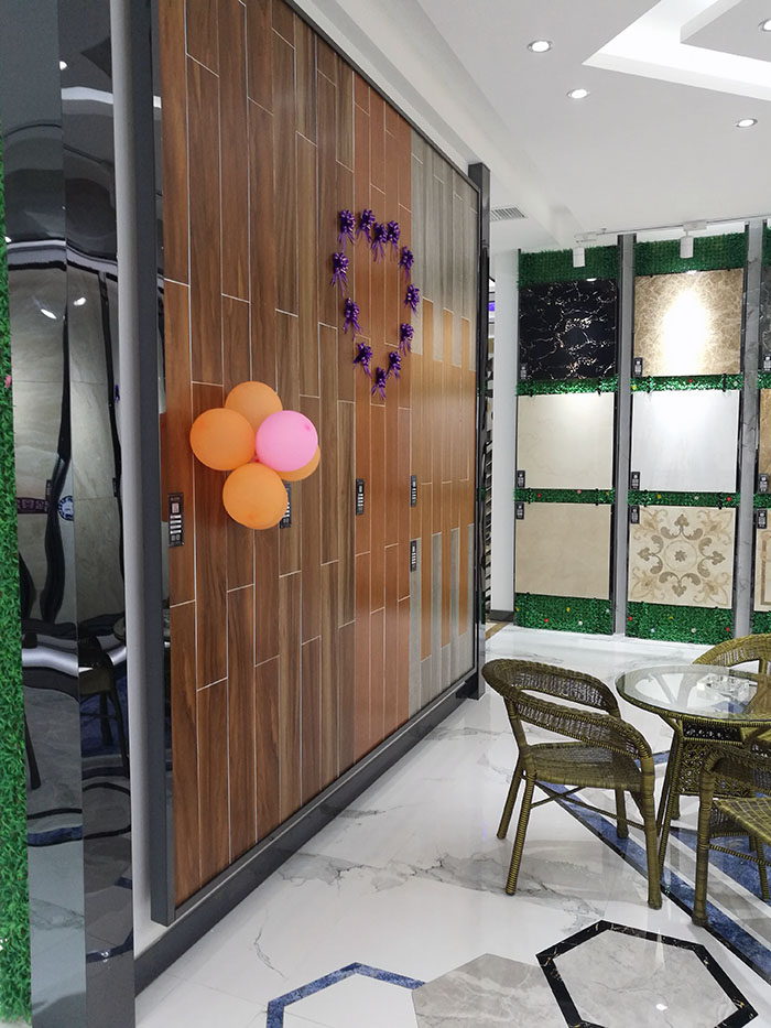 展厅内根据产品不同系列、不同风格分成了多个产品展示区域,充分体现了激情AV青青草陶瓷砖产品体系的多样化,独特的展架设计将实用性与美观性完美结合,摒弃了单调无味,让消费者们能够近距离接触产品,了解产品。