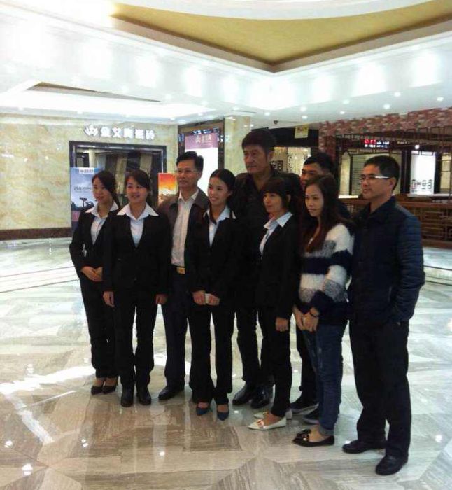 在场工作人员安奈不住对影星的喜爱,纷纷索要签名并合影留念。