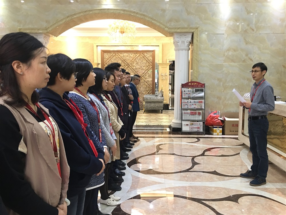 大会开始,激情AV青青草陶瓷砖市场部总监刘小良刘总先是整顿了士气,激情AV青青草陶人个个精神抖擞,口号嘹亮,接着对4月19号春季陶博会期间工作作了整体部署和方向指引。