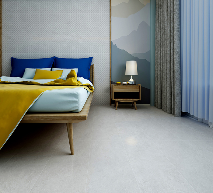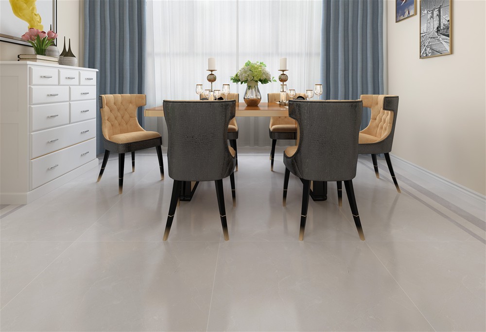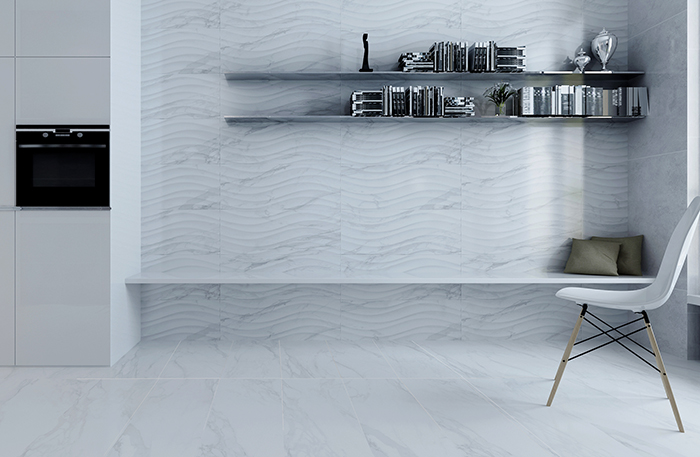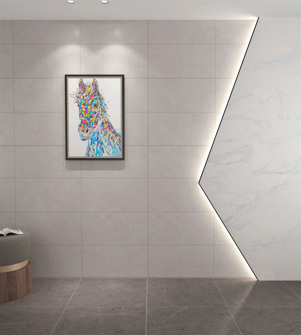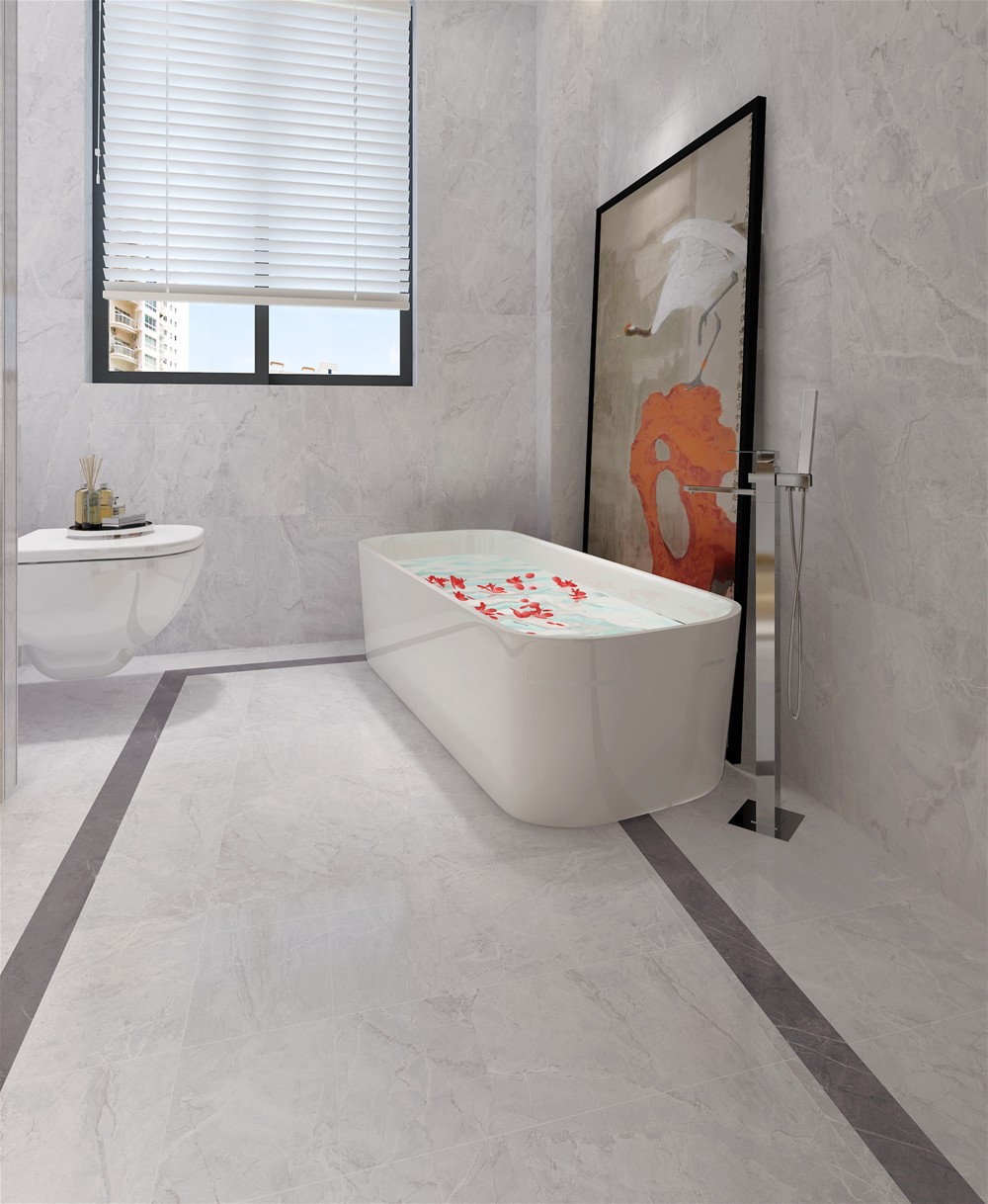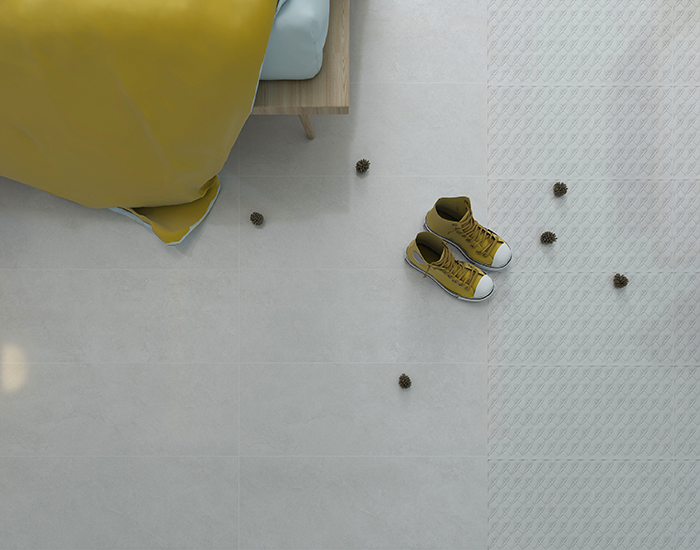 白色的表面素雅而宁静,灰色线条横跨其中,自然而纯粹,色泽素净大方,光感柔和自然,似乎是将一层薄薄的丝绸印刻在瓷砖的表面,缕缕轻丝缠绕,触感舒适细腻,带来如绸缎般丝滑体验。