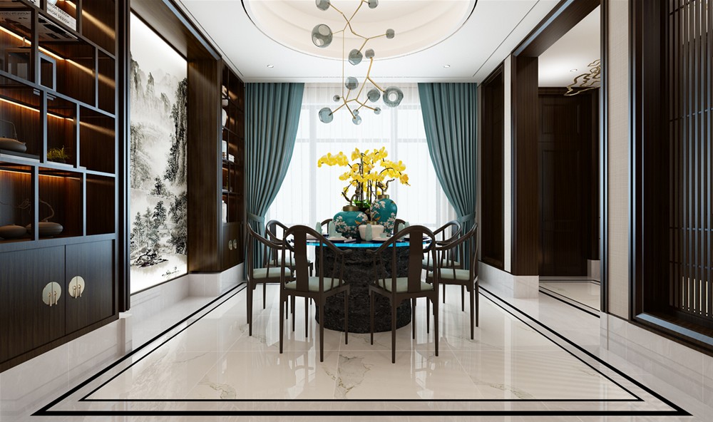 宁静致远、简洁大气的新中式风格,追求的并非形式上的中式元素的简单运用,也并非材质上的简单堆砌,而是气质上的大器天成、顺应天地自然的洒脱天然。