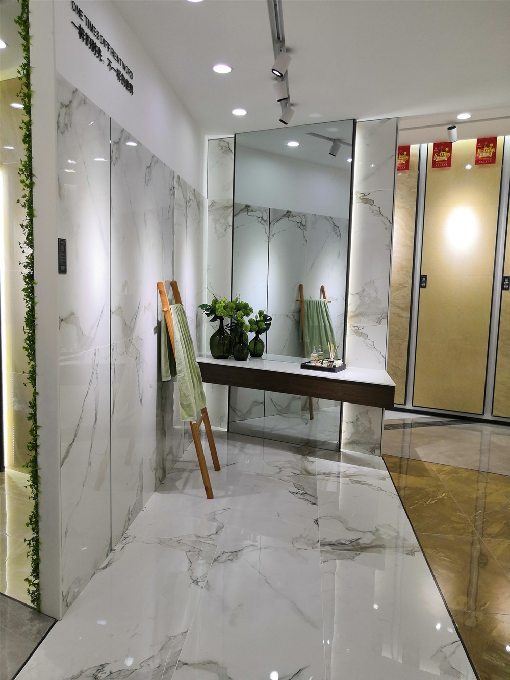 一类是时尚前沿的15度缎光釉,一类是现在热销的通体大理石 。